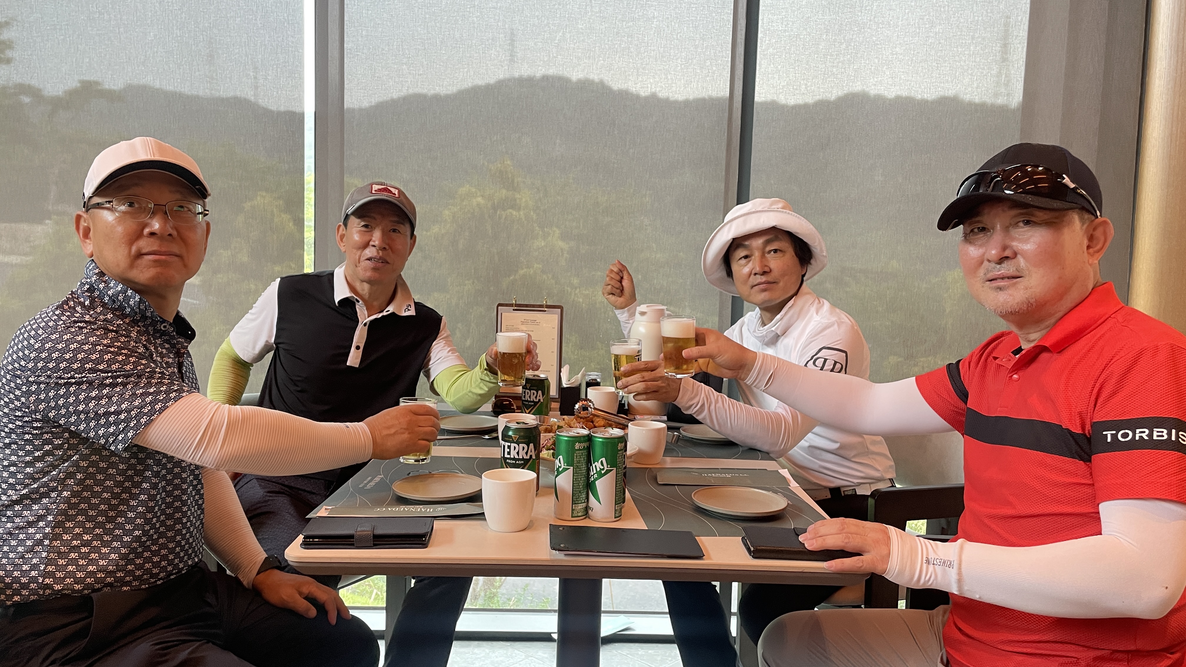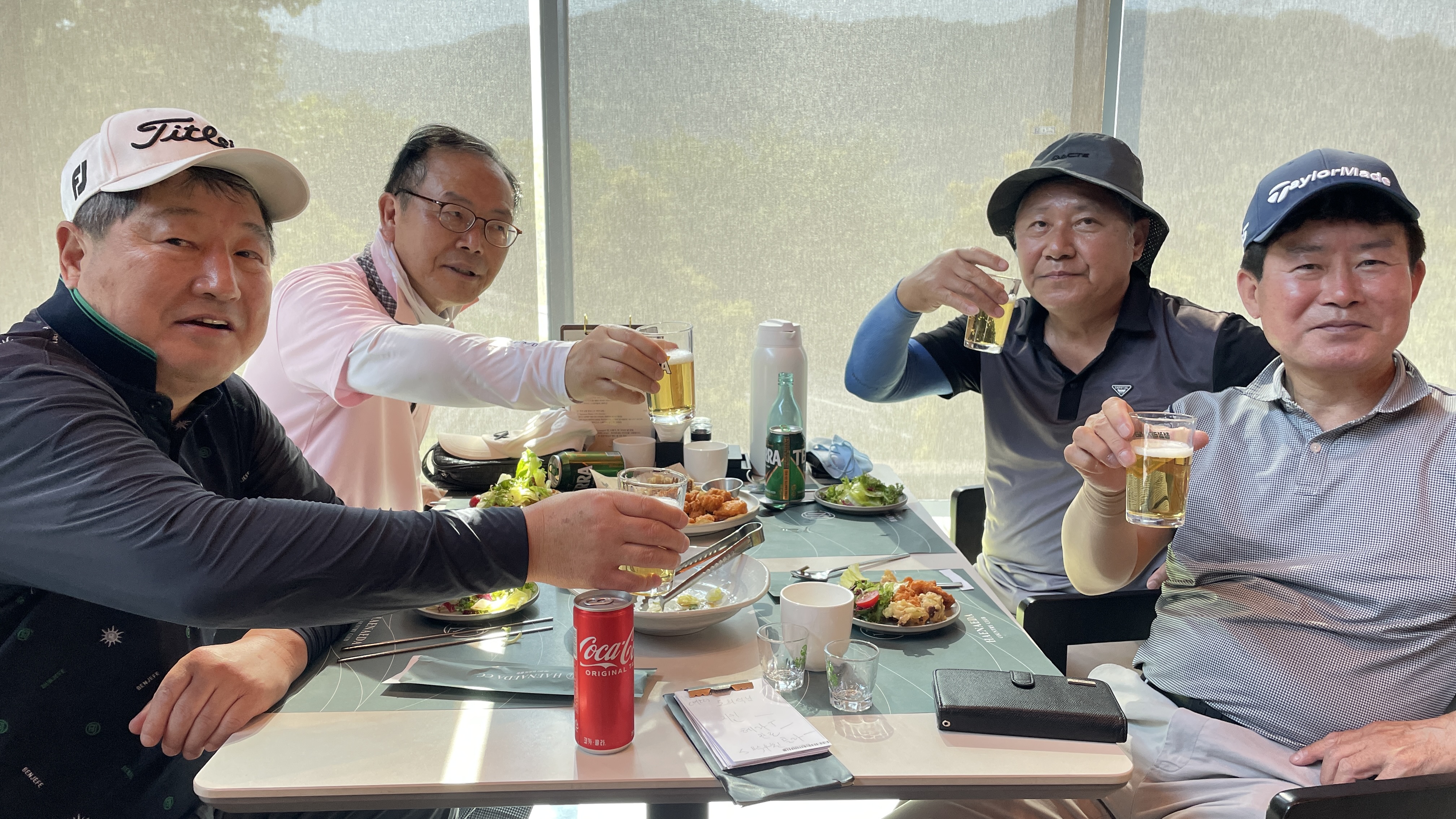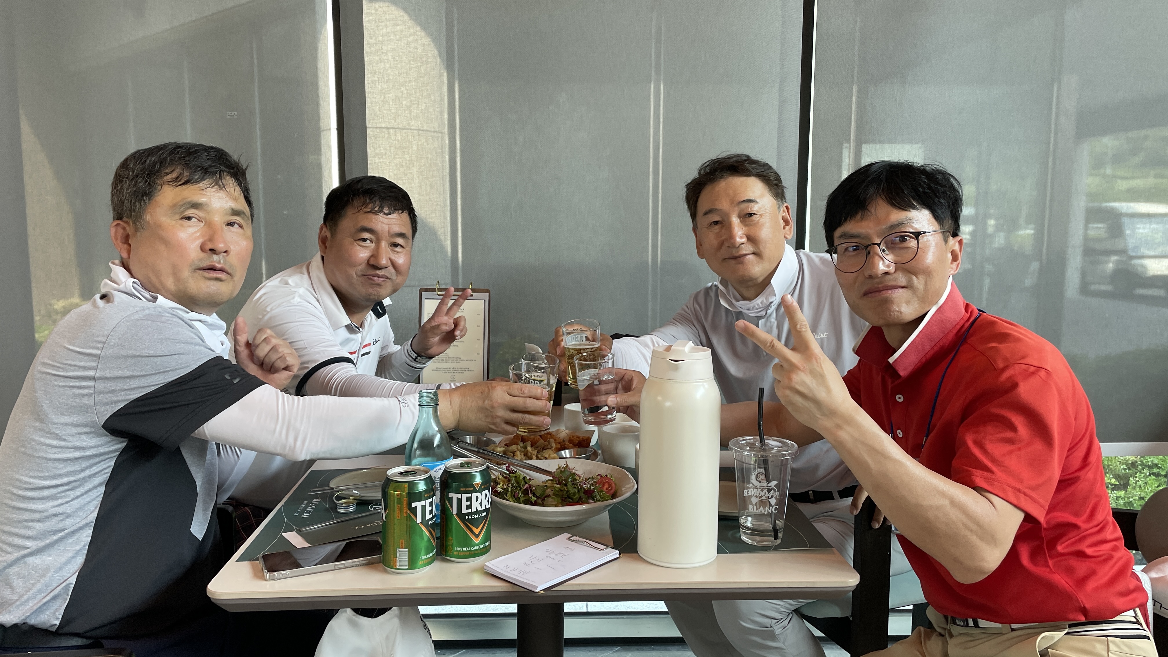 9홀을 돌고 그늘집에서 먹는 음식은 꿀맛이죠. 거기에 시원하게 마시는 한 잔은 더할나위없이 좋고요