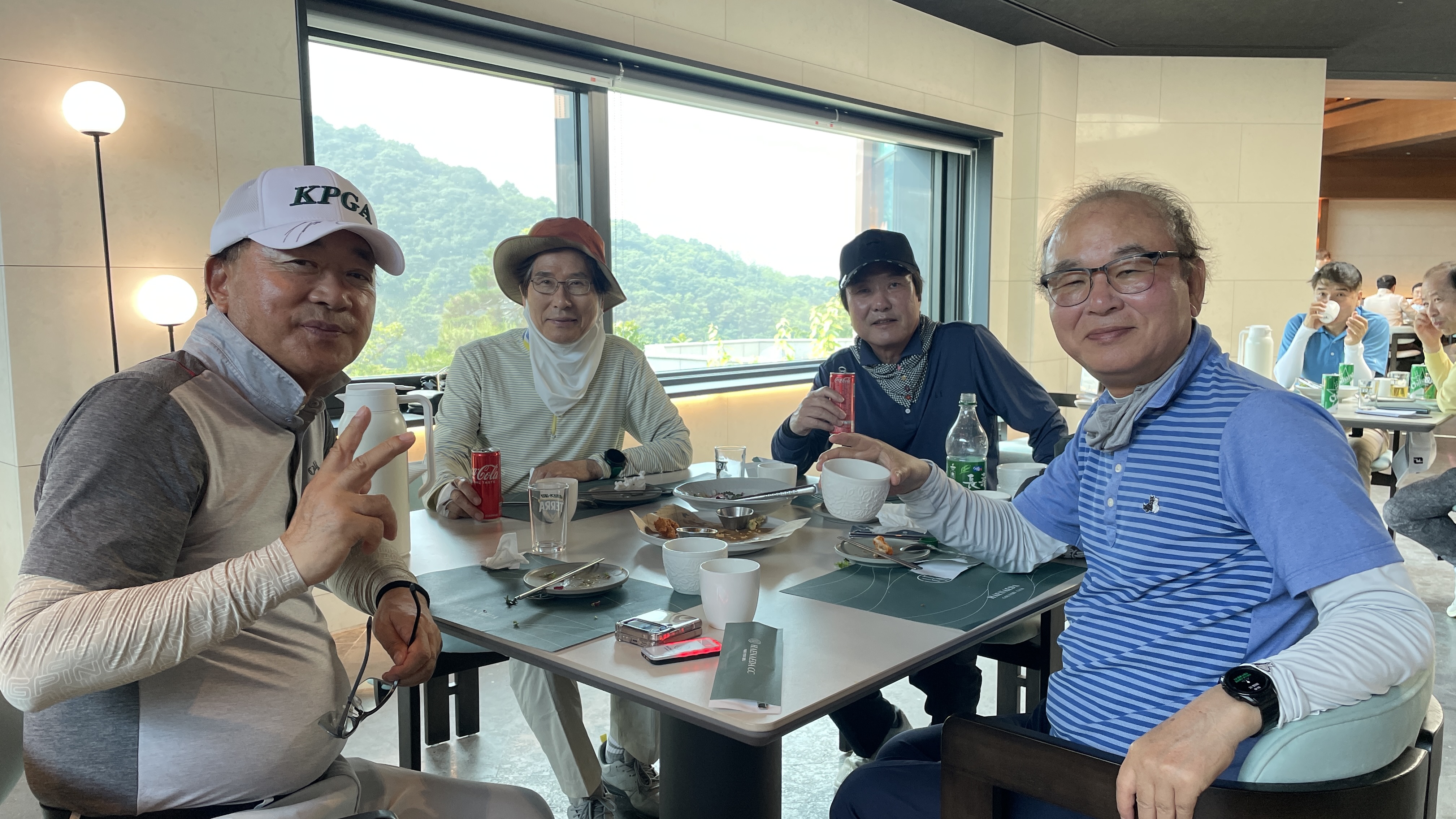 약 1시간 30분 정도가 지났을 무렵 그늘집으로 한팀씩 들어오시더군요.