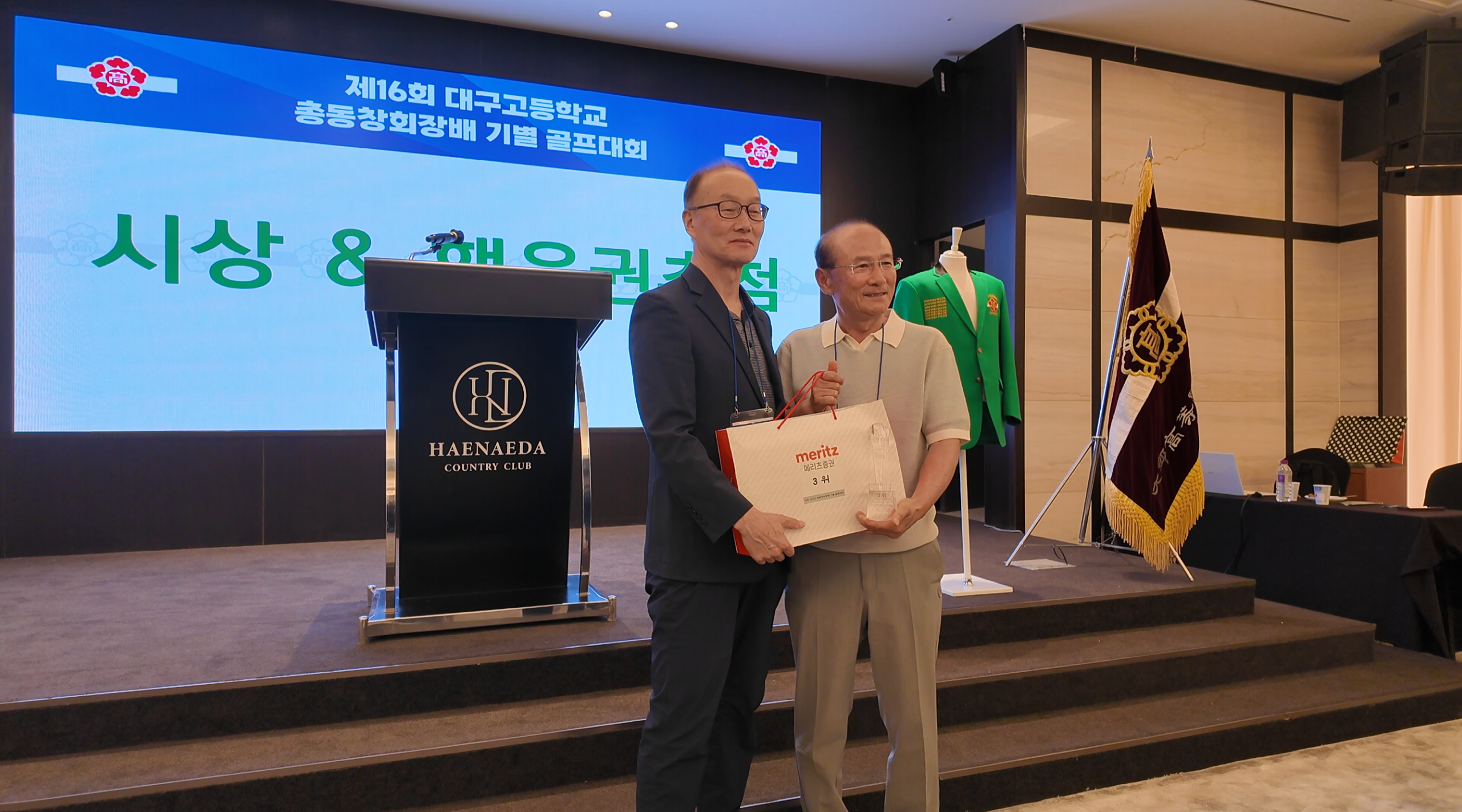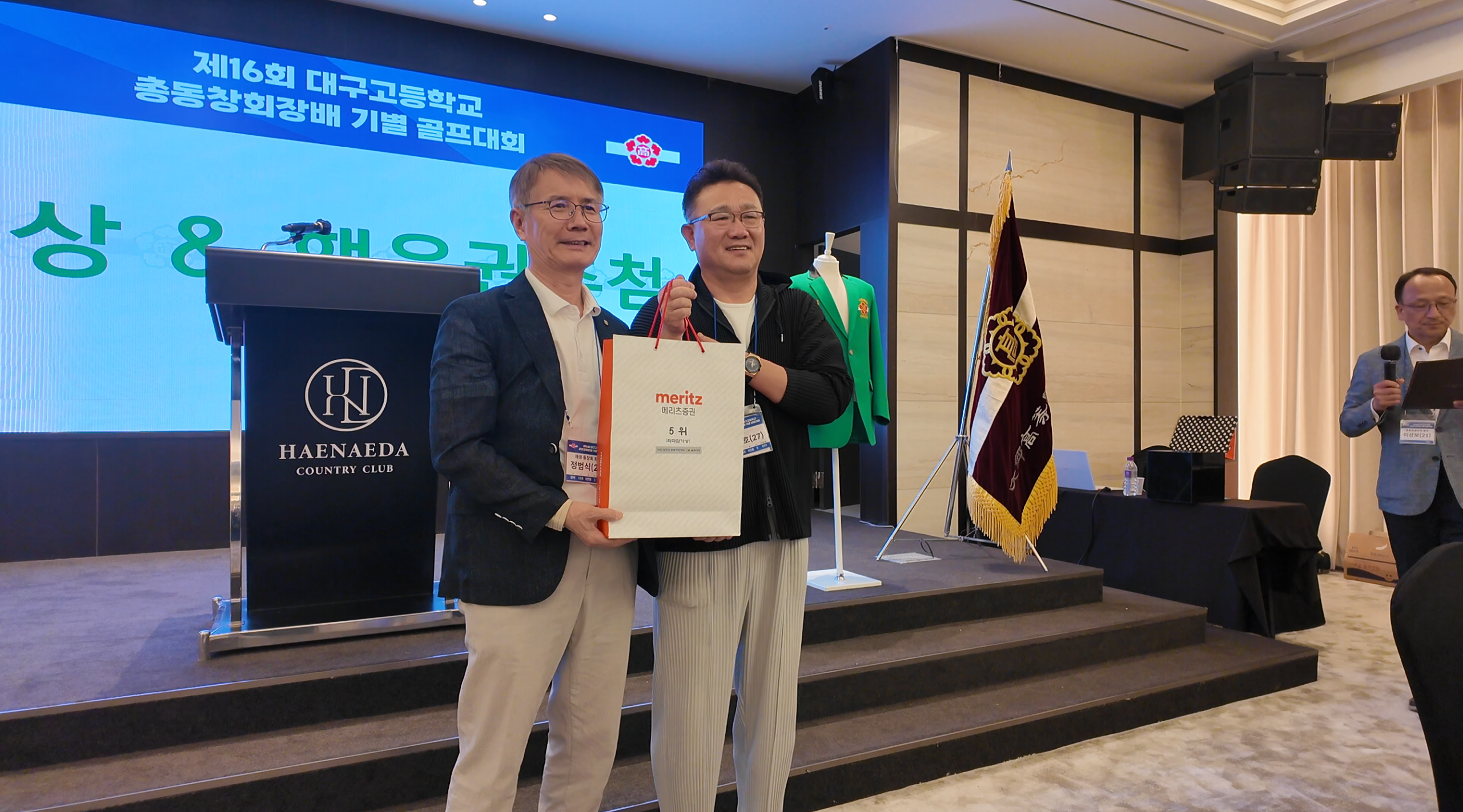 참가자 확인, 이름표 배포, 기념품 증정을 위한 테이블이 세팅되면서 제16회 대구고등학교 총동창회장배 기별 골프대회가 막을 올렸습니다.