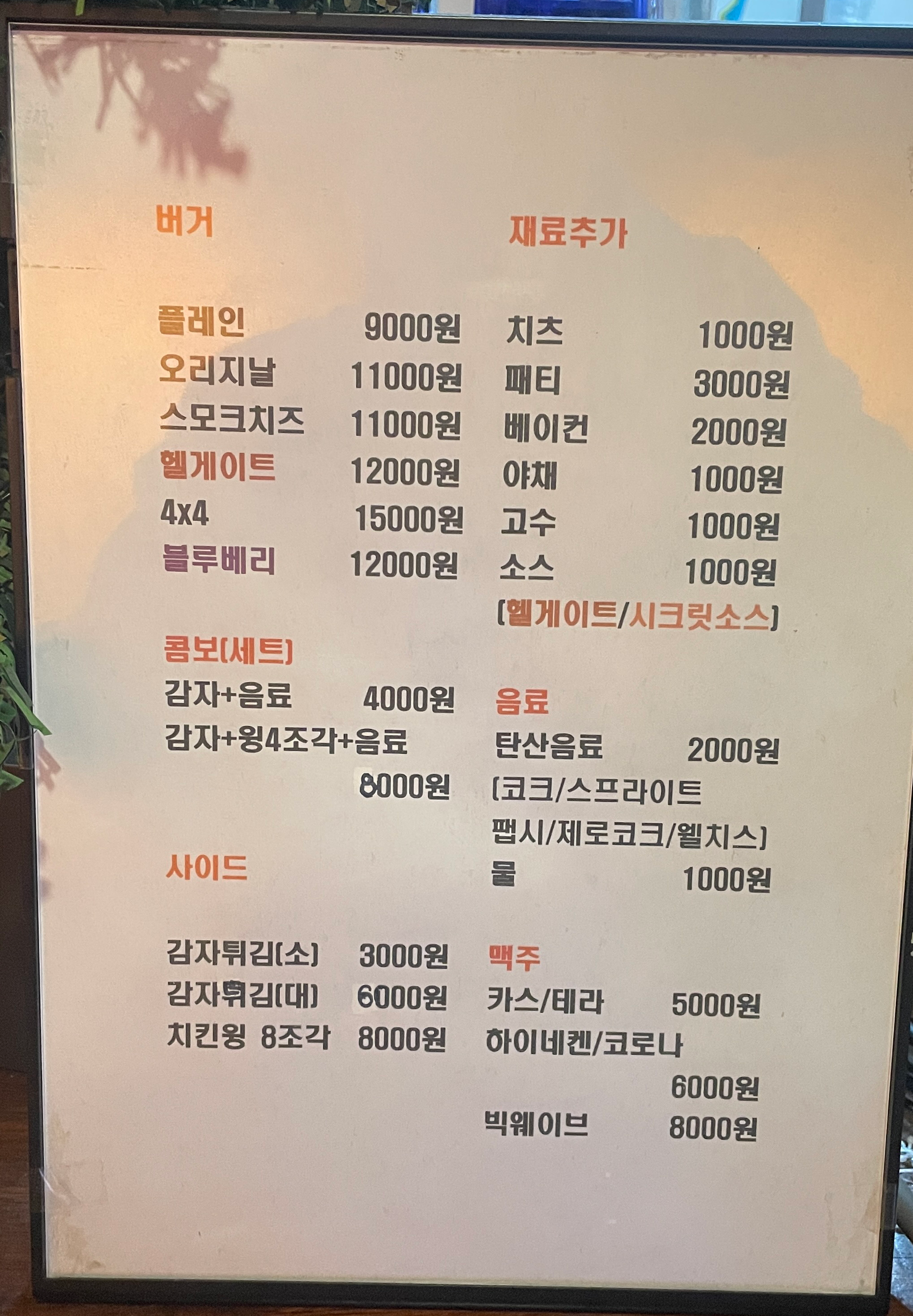 함께 있는 선배덕분에 알게된 수제버거 집인데, 햄버거는 제가 먹어본 것 중에 1등입니다.(입맛은 개인취향임)