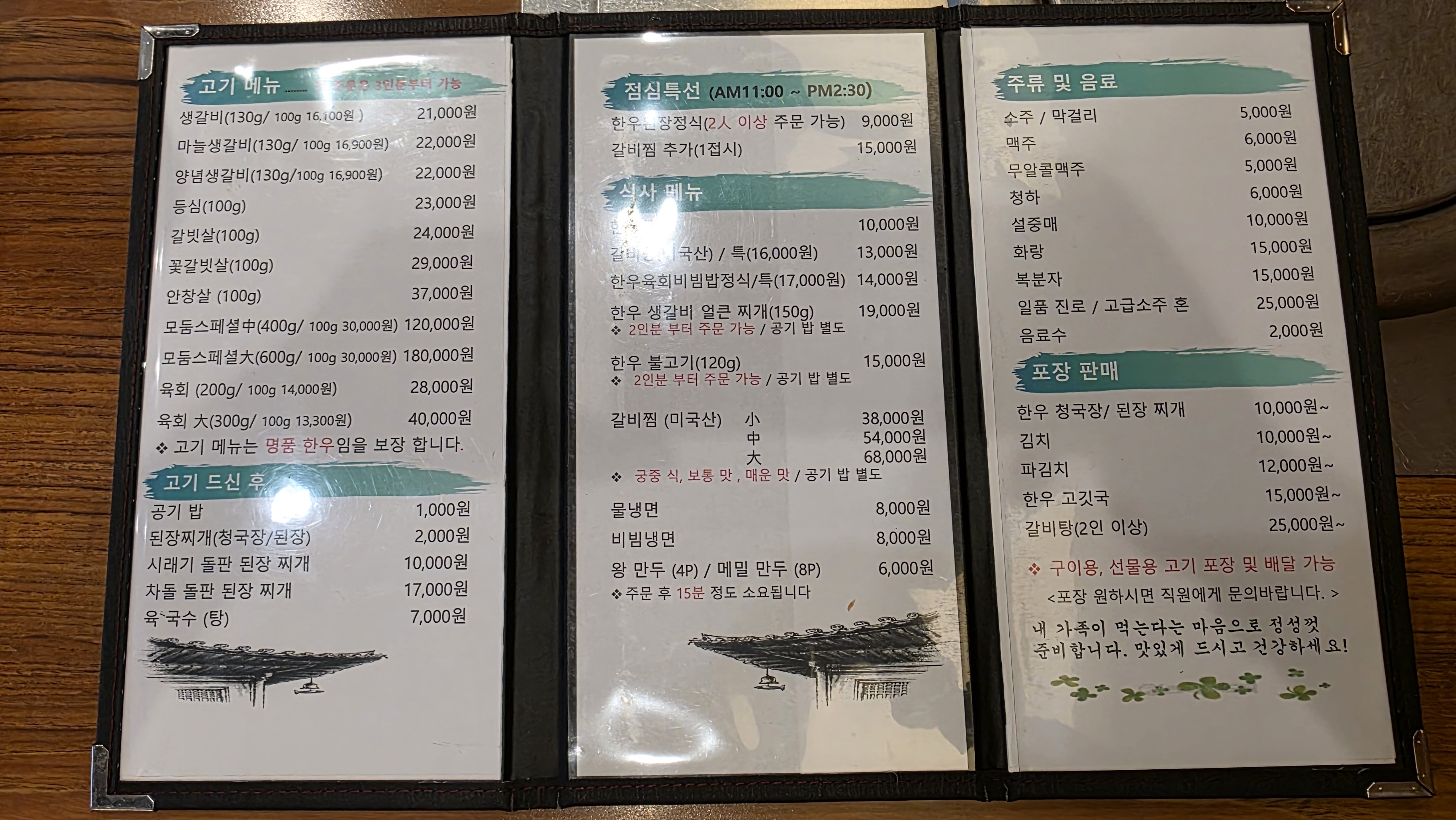 점심특선한우된장찌개 9,000원