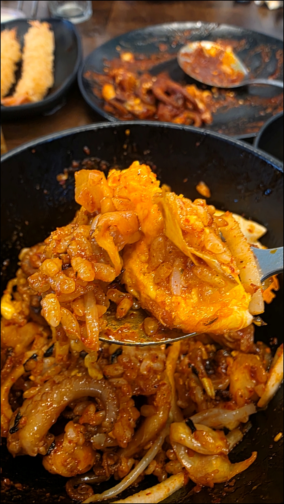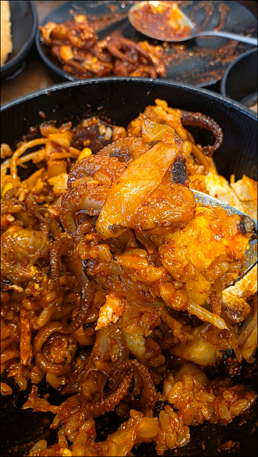 화려한 불향을 뽐내며 등장한 쭈꾸미볶음입니다.