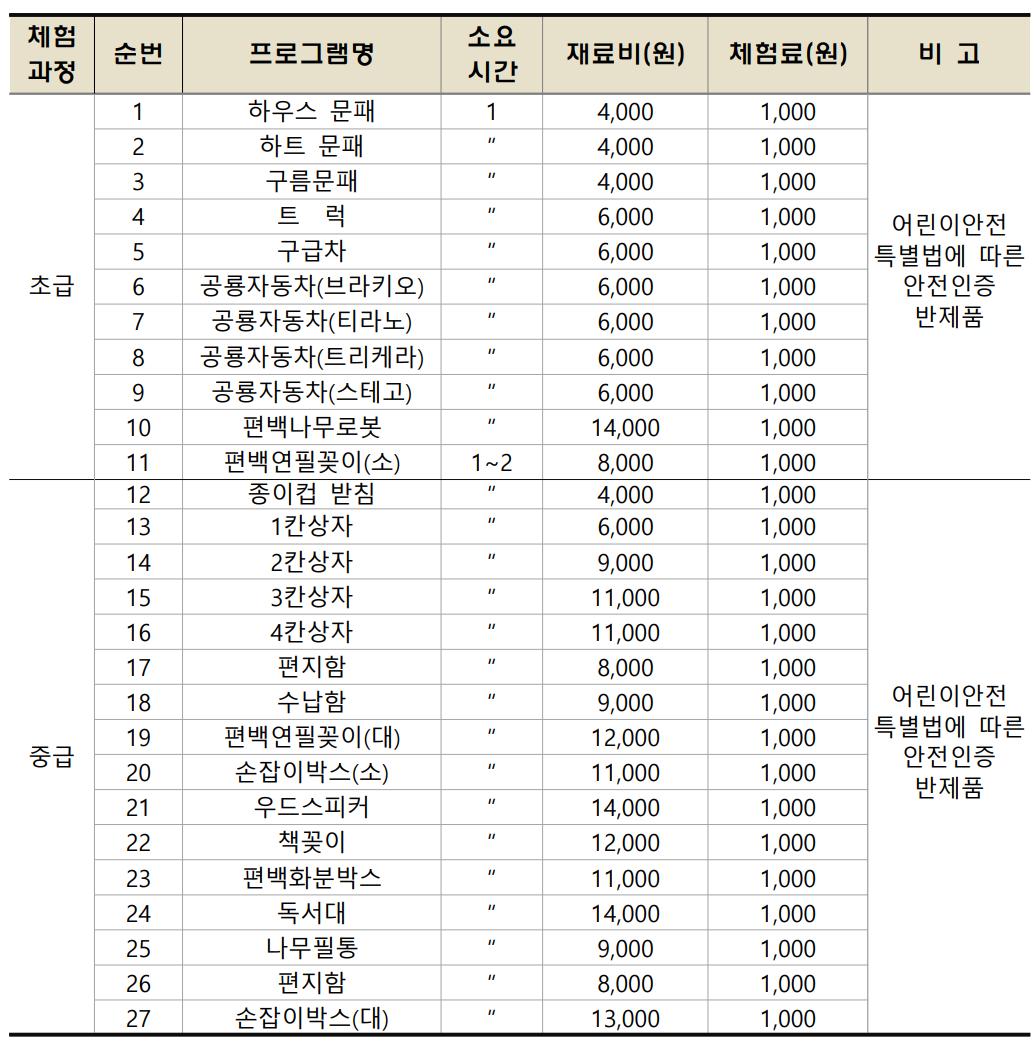 - 재료비 : 프로그램별 상이/ 카드 결제