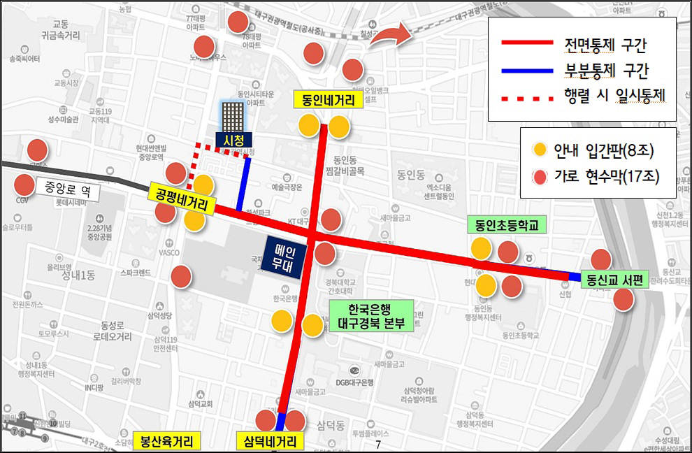 대구 교통통제는 2025년 12월 31일(수) 10:30분 부터 2026년 1월 1일(목) 1:30분까지 공평네거리 ~ 동신교 서편 / 동인네거리 ~ 섬덕네거리 구간에서 진행됩니다.
