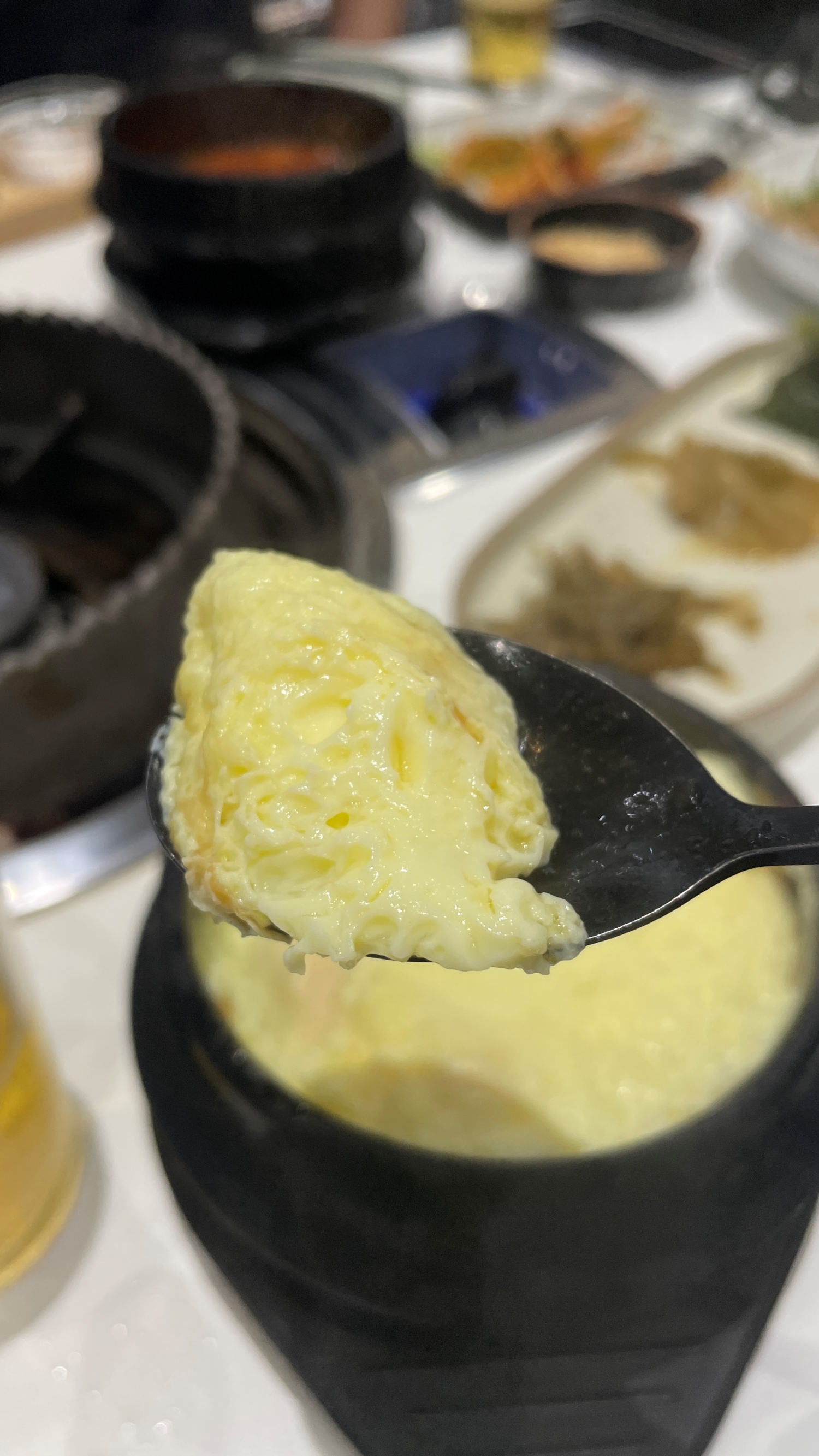 파절이를 비롯한 기본 반찬세트가 나오고, 김치찌개 그리고 계란찜이 나왔다.