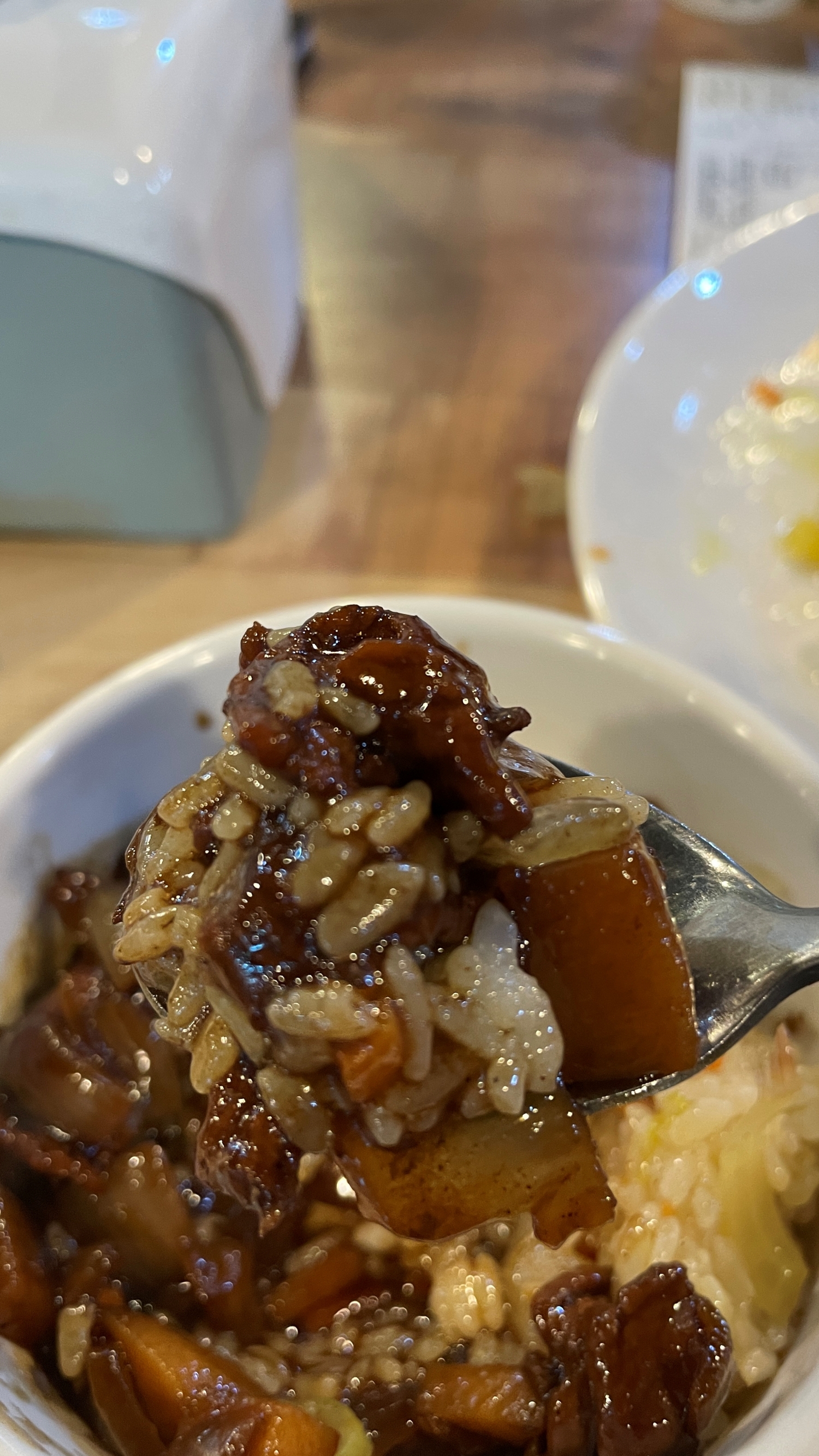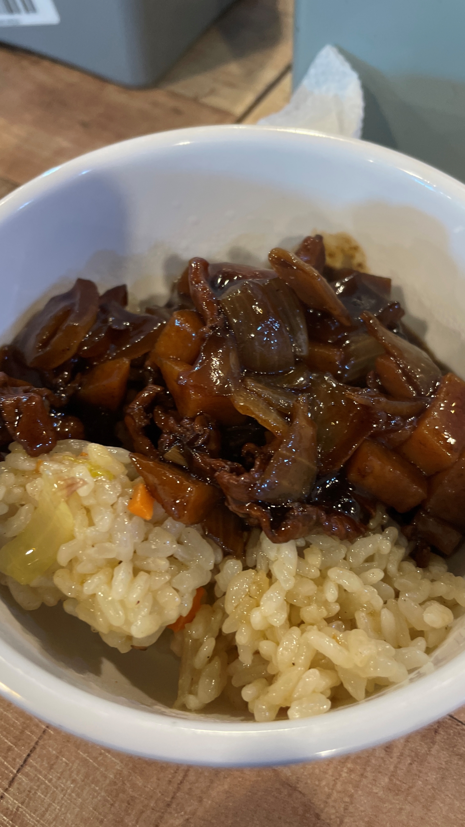 두 번째 점시에서는 치킨, 계란말이, 감자볶음, 고구마맛탕, 오징어무침, 잡채 그리고 떡볶이 중에서 양배추만 담아왔다. 그리고 짜장소스가 있길래 볶음밥에 올려서 짜장밥까지 준비!!!