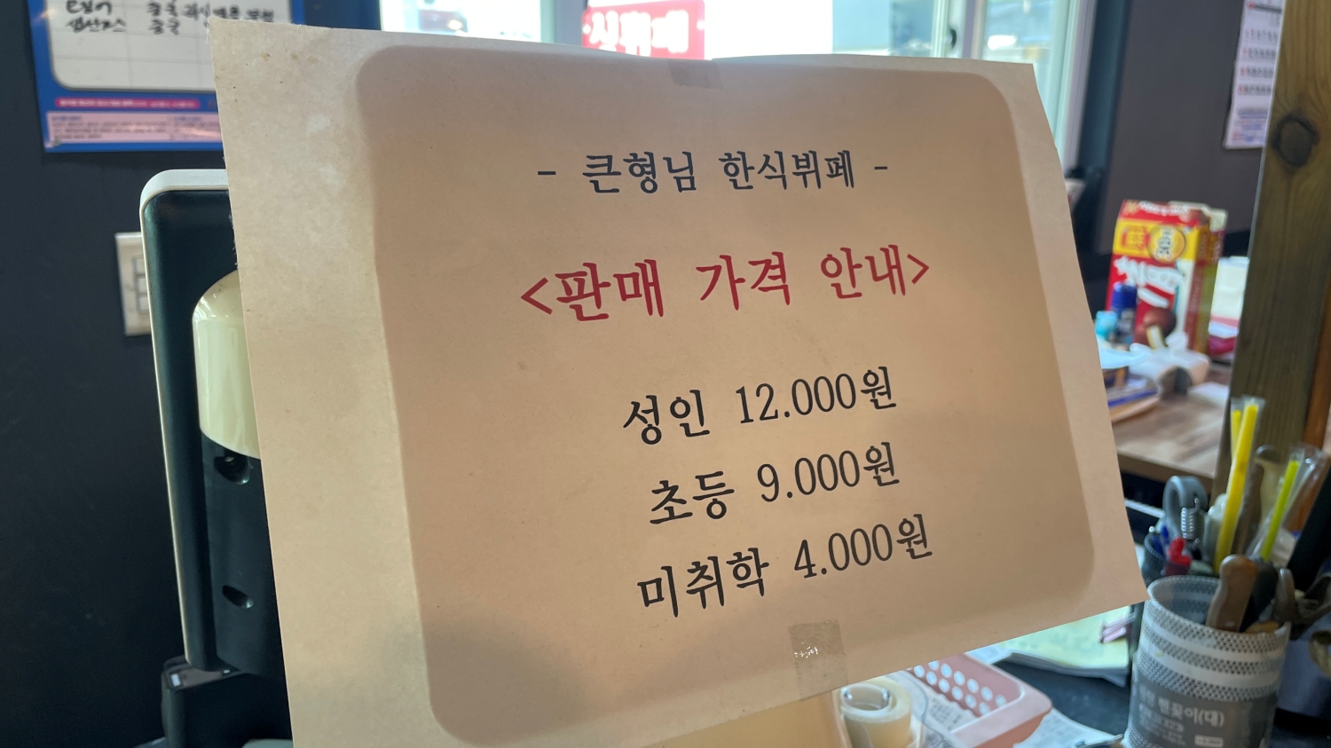 - 성인 12,000원, 초등학생 9,000원, 미취학 4,000원