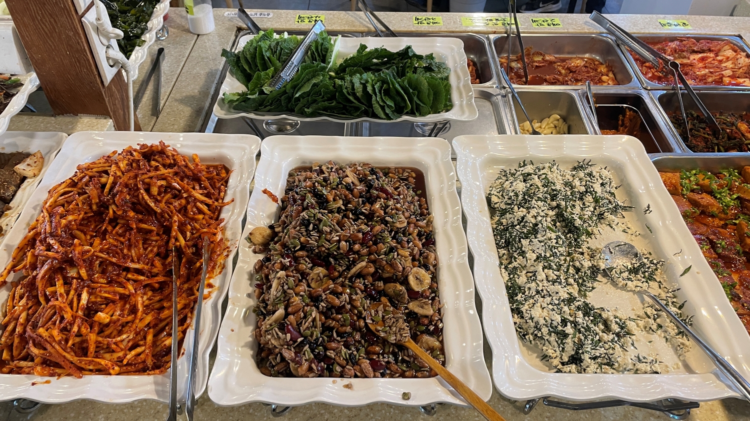 큰형님한식뷔페는 동네에서 흔하게 볼 수 있는 한식뷔페보다 천원, 이천원 정도 비싸다. 비싼만큼 음식 종류가 다양하다. 밥종류도 2~3개 많고, 국도 그렇다.