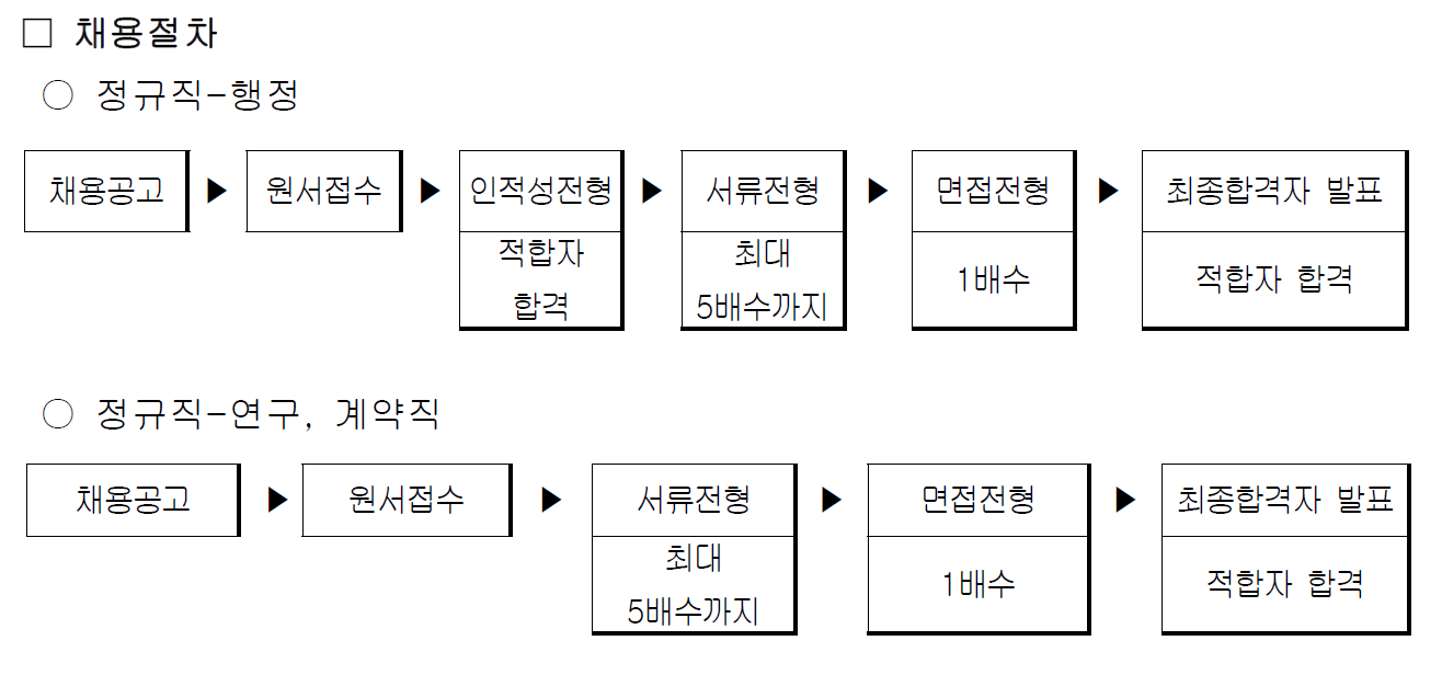 - 단, 선임급의 경우 박사 학위 취득자, 석사 학위 취득 5년 이상, 학사 학위 취득 후 7년 이상 관련 분야 경력자 또는 기타 이와 동등한 경력이 있다고 인정되어야 하고, 원금의 경우 학사 과정 이상의 이수자로서 해당분야 업무에 적합하다고 인정되는 자 또는 기타 이와 동등한 자격이 있다고 인정되는 자이어야만 지원할 수 있다.