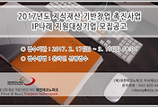 | [대전테크노파크/대전TP] 2017년도 지식재산 기반창업 촉진사업 - IP나래 지원대상기업 모집공고 (0) | 2017.02.21 |