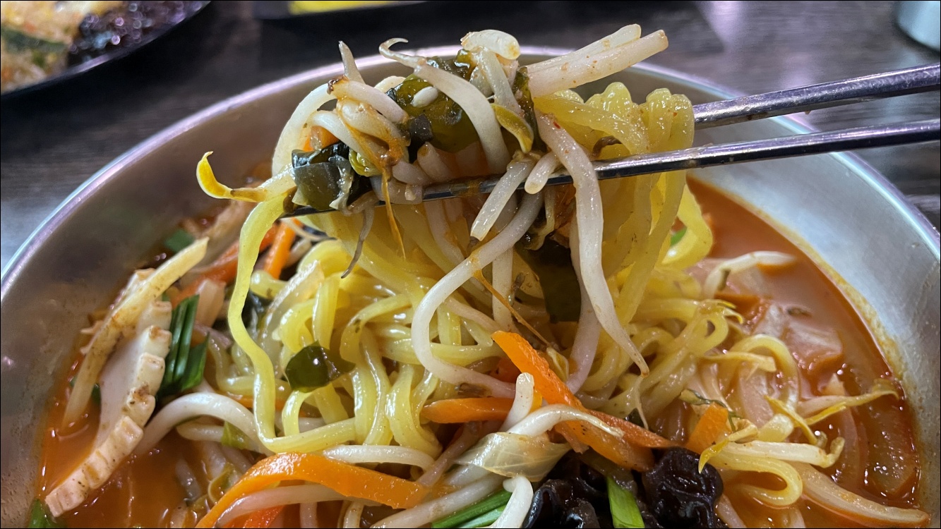 짬뽕에는 오징어, 버섯, 숙주나무 들이 들어있는데 양도 넉넉합니다. 저는 면보다는 다른 식재료를 더 좋아하는 편인데 딱 제 취향이었습니다.